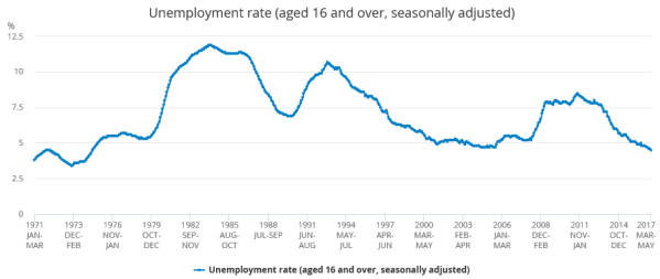 Unemployment exists in all economies; some may be classed as natural unemployment and be seen as workers change jobs etc. Other unemployment may be structural, and caused by the decline of certain industries, be it manufacturing/ mining etc. While the economy may diversify, and provide jobs in other sectors, there may be barriers which restrict workers from changing jobs. For instance, consider how difficult it would be for a former coalminer in the North UK to move into an IT-related job. First and foremost, of the barrier of education/ training, with the worker’s current skillset un-transferable for a role in IT. There may be the need for further training which has the barriers of cost and time. This is where the government can potentially help, with a key focus of the welfare system in the UK being offering workers training to make them appeal to employers. However, even if the barrier of human capital is overcome, there is then the consideration of location. Regional unemployment is also an issue in the UK, with many commenting that UK economic growth has been centred on London. So, even if the worker did re-train for a role in IT, many of the jobs may be in London. With this, there would then be barriers to labour mobility, including the cost of the worker moving from the North UK into London as well as family ties etc. In some cases, there is then the consideration that some workers could leave the workforce, pushing down the participation rate, but in turn keeping the actual unemployment rate low.