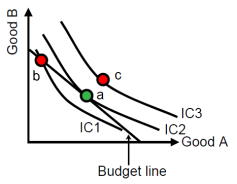 - Using the diagram below, explain why the consumer will choose a, not b or c?